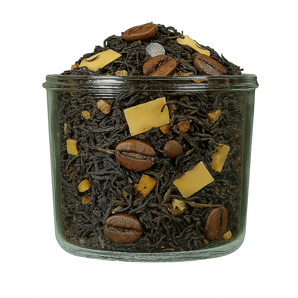 Ingredients: Black tea, Blackberry Leaf, Roasted Coffee Beans, Mini White Chocolate Chips, Cacao Shells, Freeze Dried Yogurt Pieces